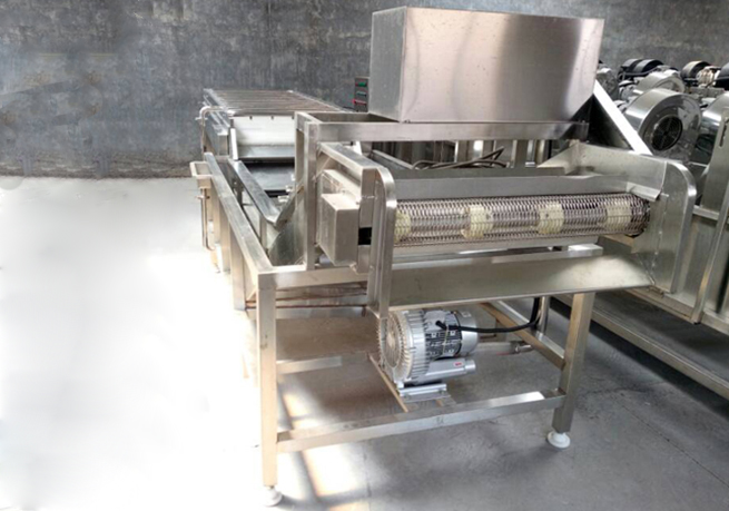 該流水線主要由清洗段、提升輸送段、震動瀝水段以及風干除水段組成,主要用于袋裝食品的高低溫殺菌后,產品表面油污、油漬的連續(xù)清洗及風干。